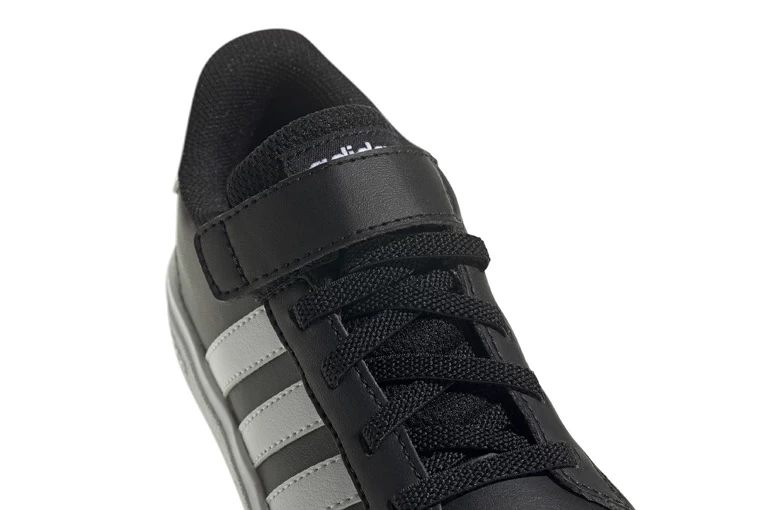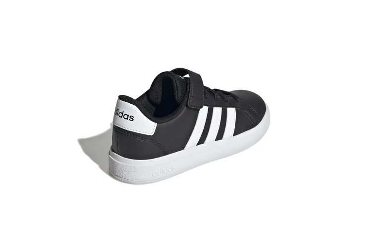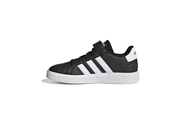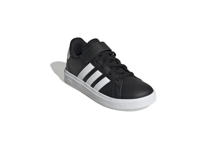 Het is nooit te vroeg om de sneakercollectie van je kind op te bouwen. Deze Grand Court adidas kinderschoenen vormen een goed begin. Ze zijn uitgerust met een stevige, maar flexibele rubberen cupzool die elke stap en sprong ondersteunt. De elastische veters van het klassieke model rekken mee als je kind ze aantrekt, en ook de klittenbandsluiting bovenaan kan prima door jonge handen bediend worden, waardoor ze niet lang in de kast zullen blijven liggen.