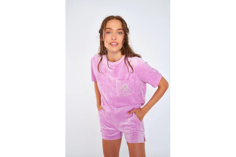 Velours sportshort voor dames met elastische taille en 2 zakken.