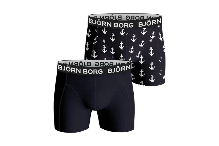 Een stijlvolle set van twee Björn Borg Anchor Cotton Stretch Shorts. Dit ondergoed is uitgevoerd in zachte stretchkatoen, kenmerkt zich door een halfhoge taille en halflange pijpen, en is afgewerkt met een iconische elastische tailleband van zachte microvezelstof voor extra comfort.