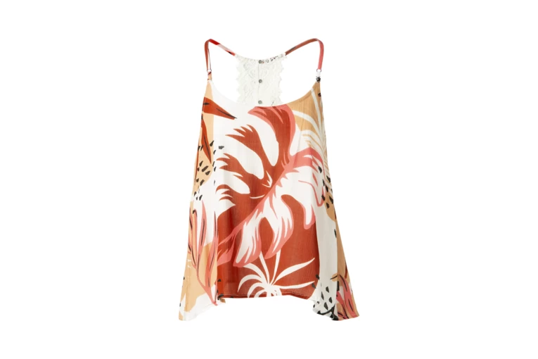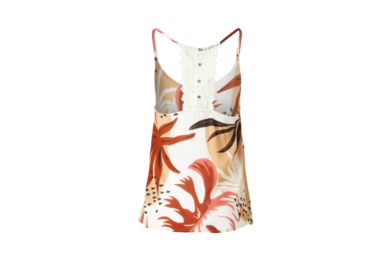 Mooie loszittende A-lijn top met verstelbare bandjes en kanten details op de rug.