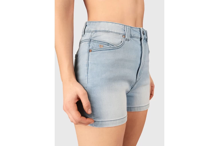 Deze korte jog jeans met een hoge taille is gemaakt van zachte spijkerstof met lichte stretch, waardoor hij zeer comfortabel zit.