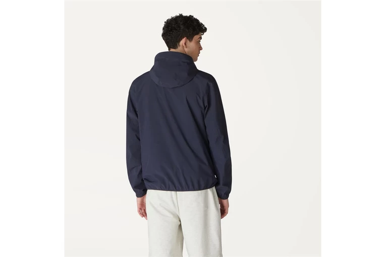 De Jack Nylon Dot is een kort jas voor mannen. Gemaakt van nylon, hydrofiele coating en zilveren print, technisch, comfortabel, waterafstotend, waterbestendig, ademend en winddicht. Met warmte gesealde naden, opent aan de voorkant met een volledige K-Way-ritssluiting, op maat gemaakte metalen trekker. De capuchon heeft een elastische zoom die verstelbaar is met een trekkoord. Twee zijzakken gesloten met een rits, elastische manchetten en zoom onderaan.