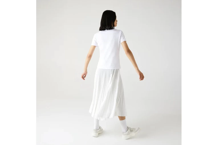 Verkrijgbaar in een groot aantal kleuren. Je hebt enorme keuze met deze katoenen polo. Parelmoeren knopen, een geborduurde krokodil op de borst en een thermisch gelijmde knooppas om het design vrouwelijk te houden.