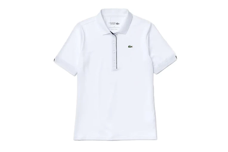 Met deze Lacoste Sport-golfpolo van ademende jersey met stretch ben je verzekerd van minimalistische en elegante flair op de golfbaan. Een sportieve essential met ultra-dry-technologie en details die zorgen voor comfort en frisheid. De geribbelde polokraag heeft een vrouwelijke knooppas met vier knopen en een contrasterend lipje met dezelfde afwerkingen als de binnenkant van de mouwen.