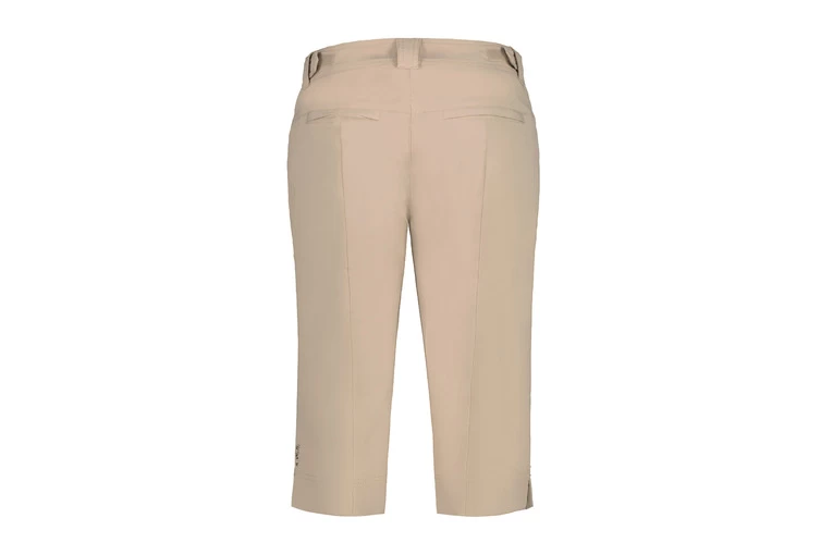 Capri broeken zijn een zomerklassieker, en geen wonder: de vorm is veelzijdig en comfortabel, zeker als je de juiste stof kiest. De Luhta Eiskola capribroek is gemaakt van een technische stretchstof, die mee rekt met bewegingen en de broek ondanks het slanke model in elke situatie comfortabel maakt. De stof heeft een waterafstotende behandeling en slaat geen vocht op en droogt snel. De taille is aan de achterkant iets hoger en kan worden versteld met de klittenbandsluitingen aan de zijkanten.