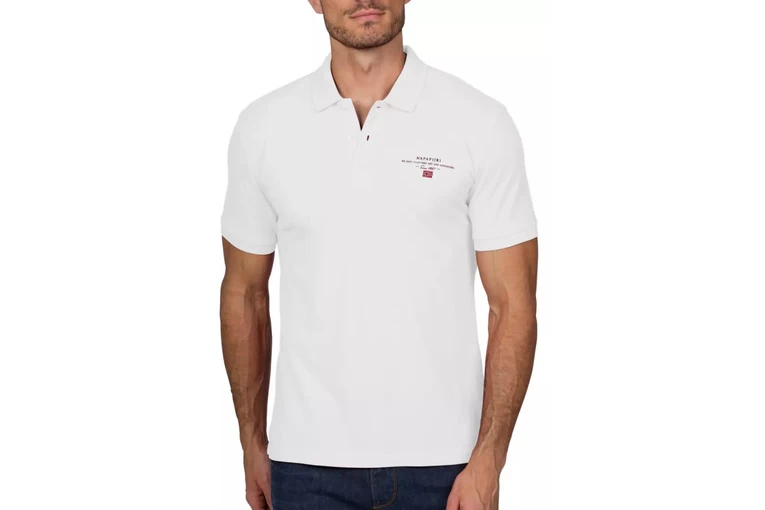Het klassieke Elbas poloshirt met korte mouw, dat als kledingstuk geverfd is voor een verouderd, effect, viert Napapijri’s lange geschiedenis, vastgelegd door de iconische vlaggenbadge van het merk.