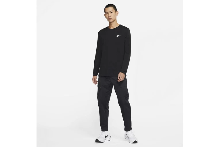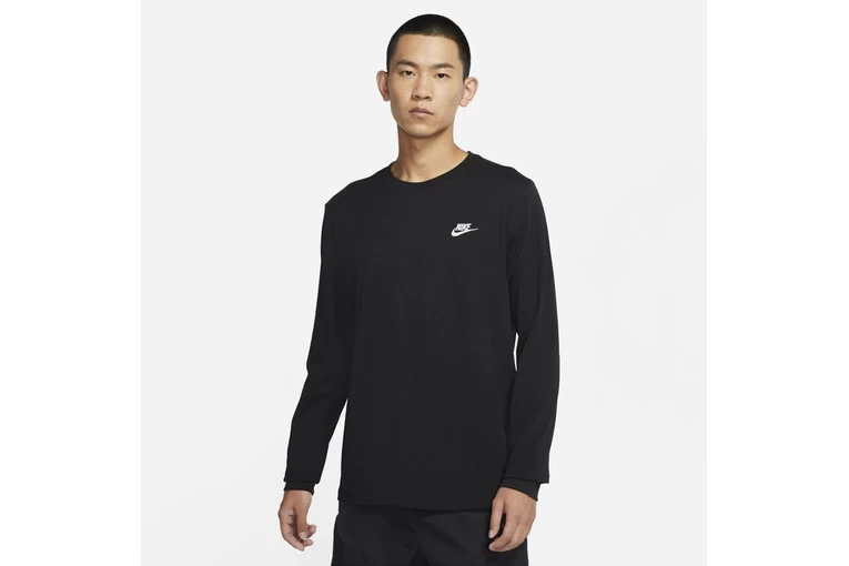 Het Nike Sportswear T-shirt met lange mouwen voor heren voelt zacht aan door het gebruik van zacht katoenen jersey en heeft een geborduurd Nike bedrijfslogo op de borst.