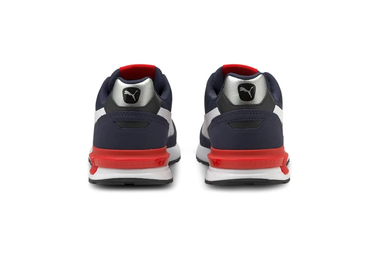 The Graviton is inspired by PUMA’S heritage running archive with an easy going and progressive aesthetic. The upper consists of a mix of materials and features an overlay, wrapping around the forefoot area, formstripe such as tongue and FOT branding. The IMEVA midsole gives the look of a diecut runner, but allows us to play with sculpting and textures on the sidewall. The heel clip is inspired from modular looks and really brings the design into 2021. The SoftFoam+ sockliner provides superior cushioning and optimal fit for every step of your day.