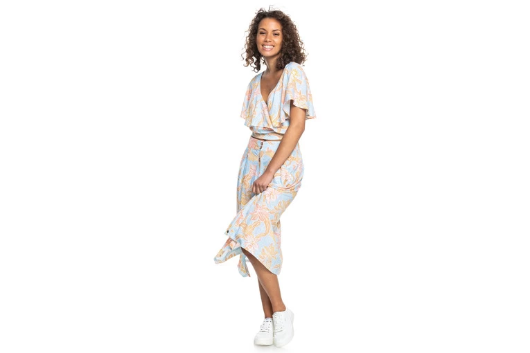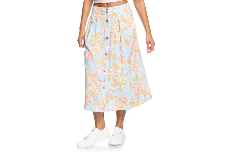 – Stof: Lichte bedrukte, duurzame platte viscose [120 g/m2] – Elastische tailleband [alleen aan de achterkant] – Sluiting: Sluiting voor met knopen van kokosnoot